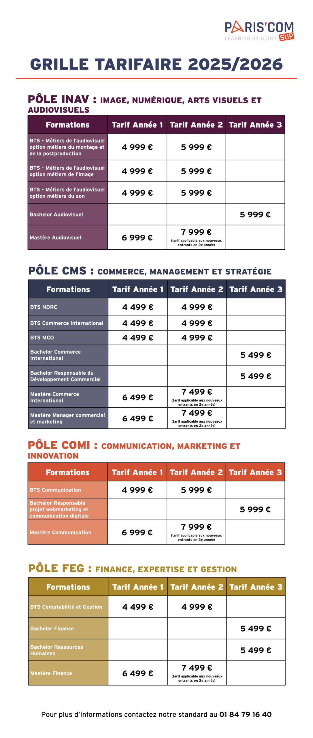 Paris’Com Sup accueille les étudiants à partir du niveau Bac jusqu’au Bac+5. Que vous soyez lycéen, étudiant en réorientation ou diplômé d’un Bac+2/Bac+3, nos formations s’adaptent à votre niveau. Des prérequis spécifiques peuvent être demandés selon les cursus visés.